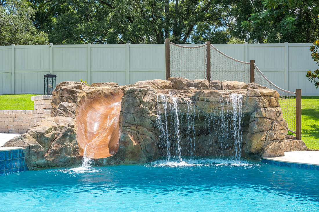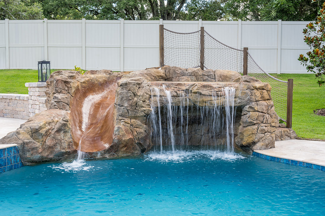 Children and adults alike love slides! They can be made out of a rock like material or a plastic composite material both of which offer fun and excitement to your pool.