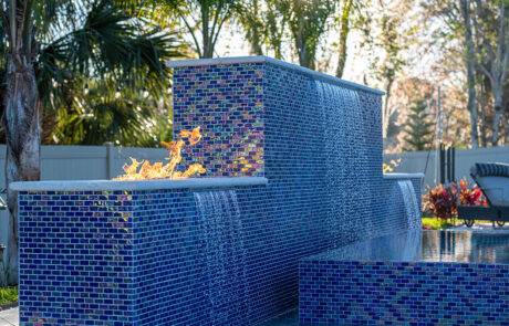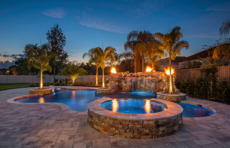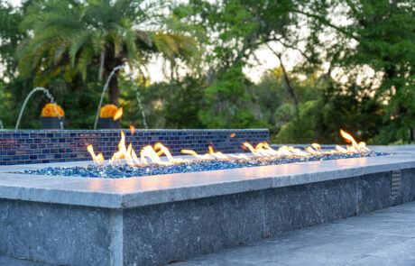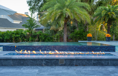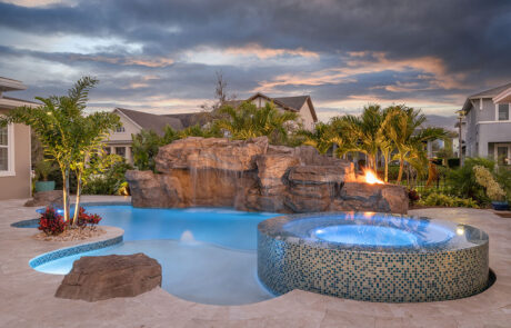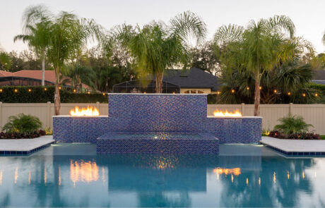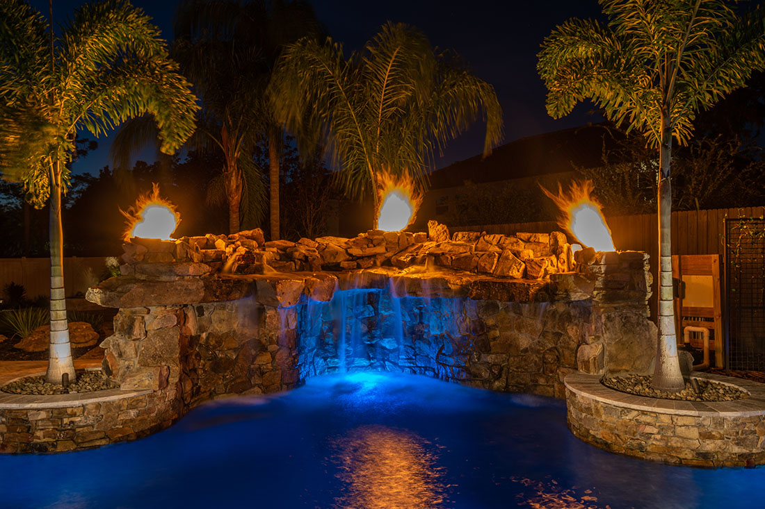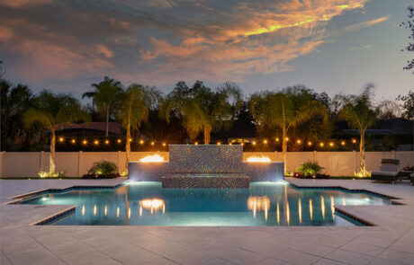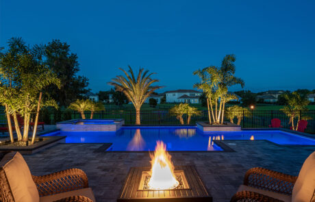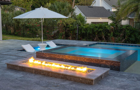 Cool nights are an excellent way to warm up and still enjoy the outdoors and the ambiance of your pool. The sky is the limit to the creativity that can be used when designing and building fire pits and fire bowls.